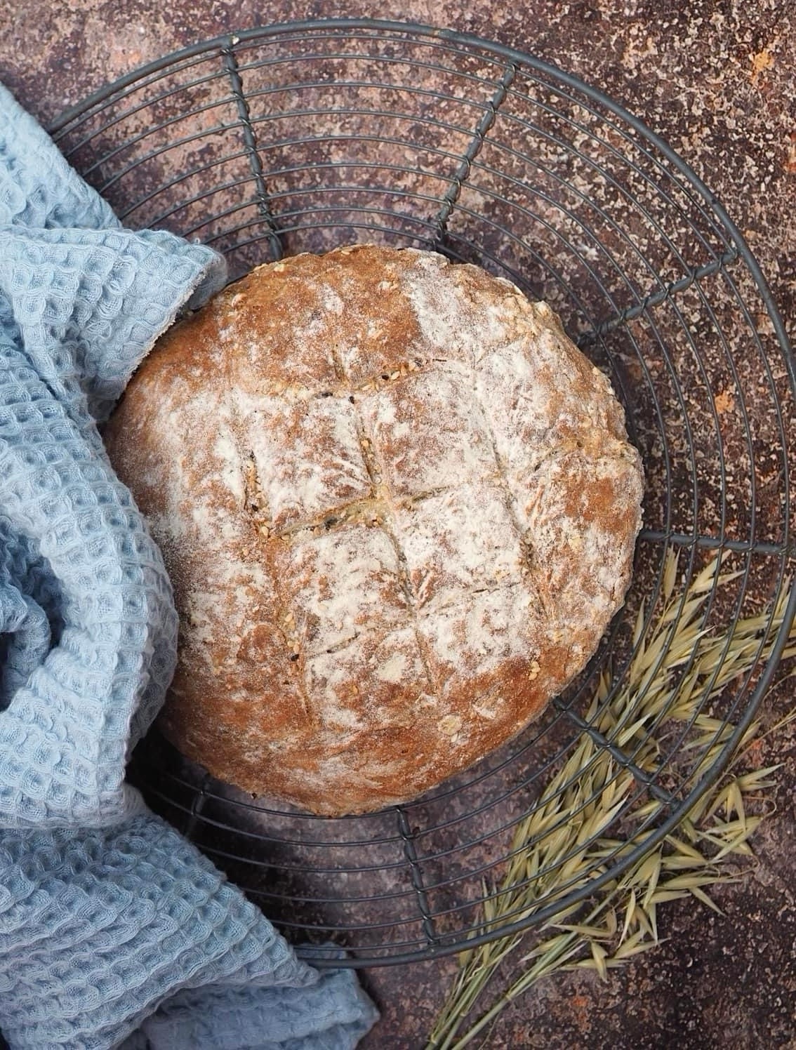 Alkuperäinen ohje on vehnäleipä, mutta minä tein samaan tapaan yrteillä maustetun kauraleivän.