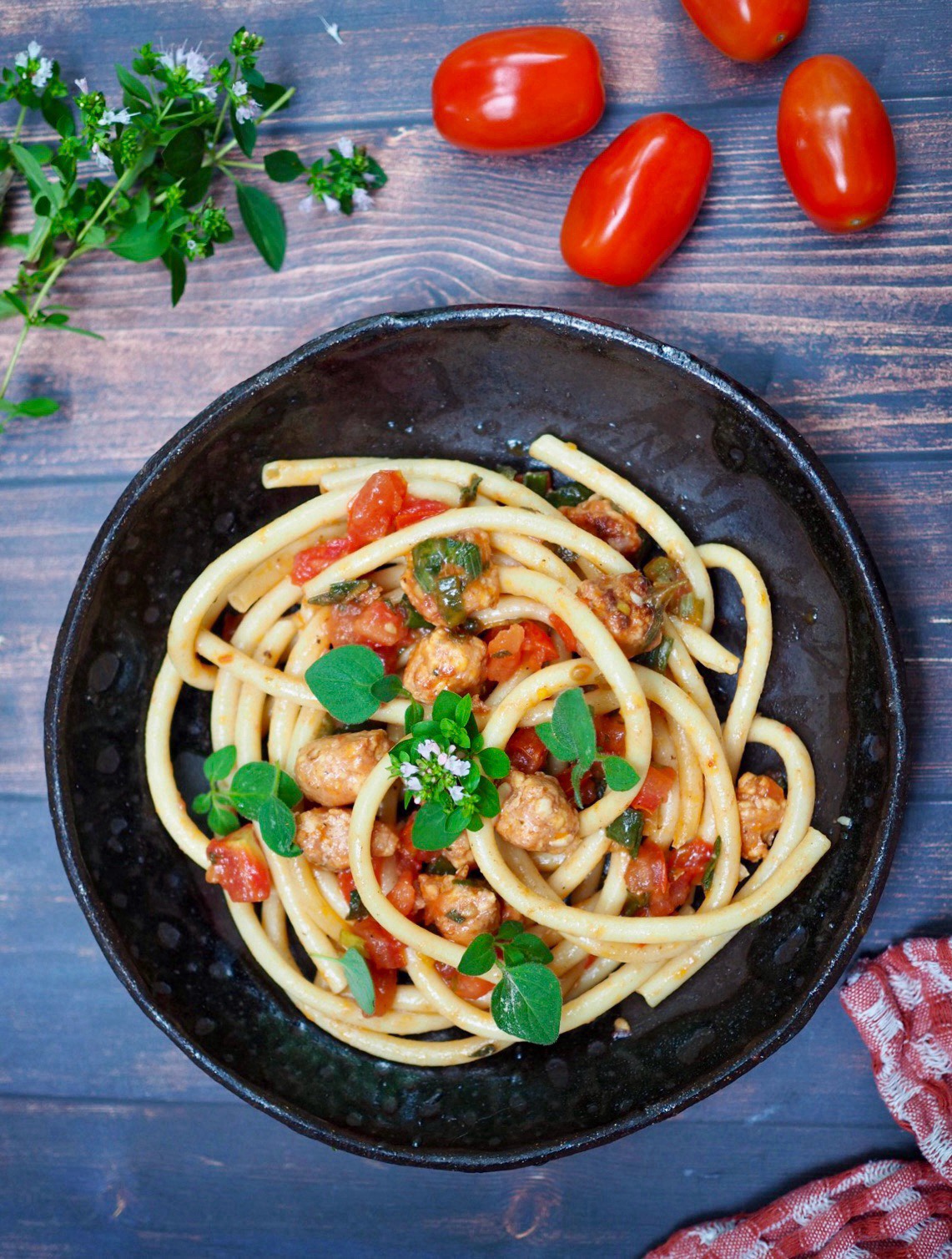 Viimeistele silputulla tuoreella oreganolla tai basilikalla.