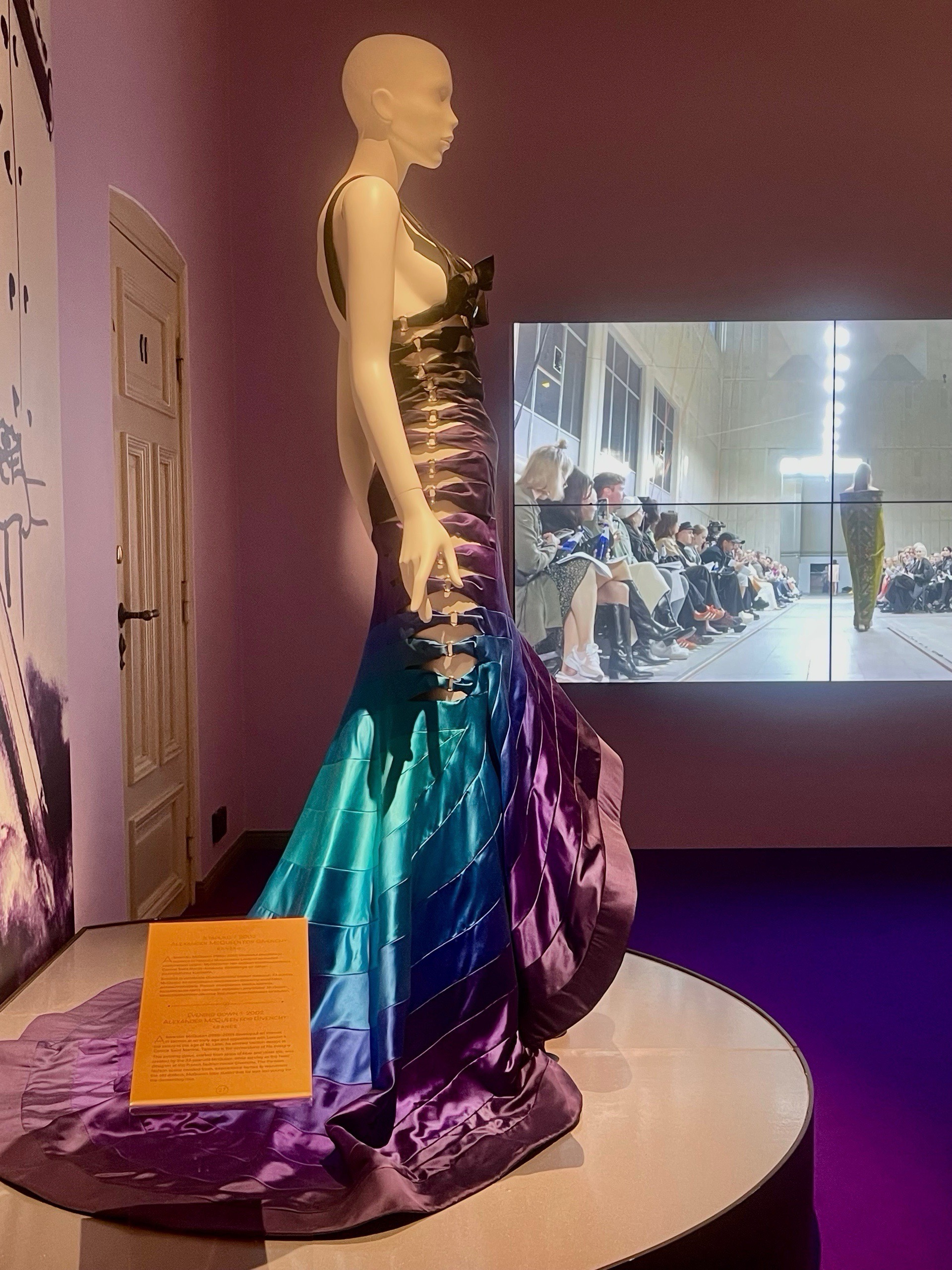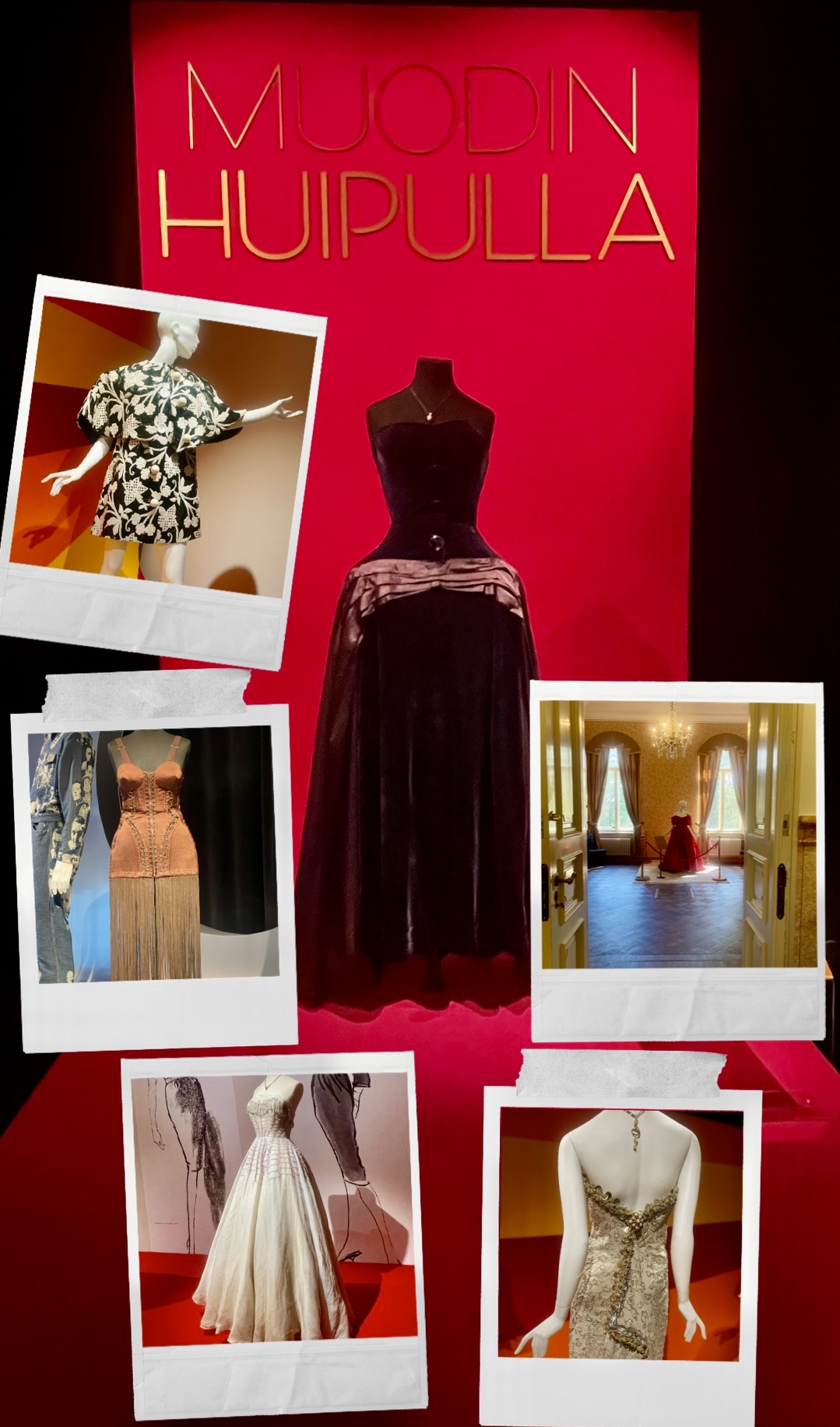 Museo Milavidan Muodin huipulla -näyttely oli syy miksi lähdimme Tampereelle. Sattumalta osuimme museoon juuri kun ilmainen opastettu kierros alkoi klo 13. Muodin huipulla -näyttely esittelee muodin yltäkylläistä ja häikäisevää tarinaa 1770-luvulta 2010-luvulle.Tunnin kestäneellä kierroksella kuulimme jokaisen puvun tarinan.