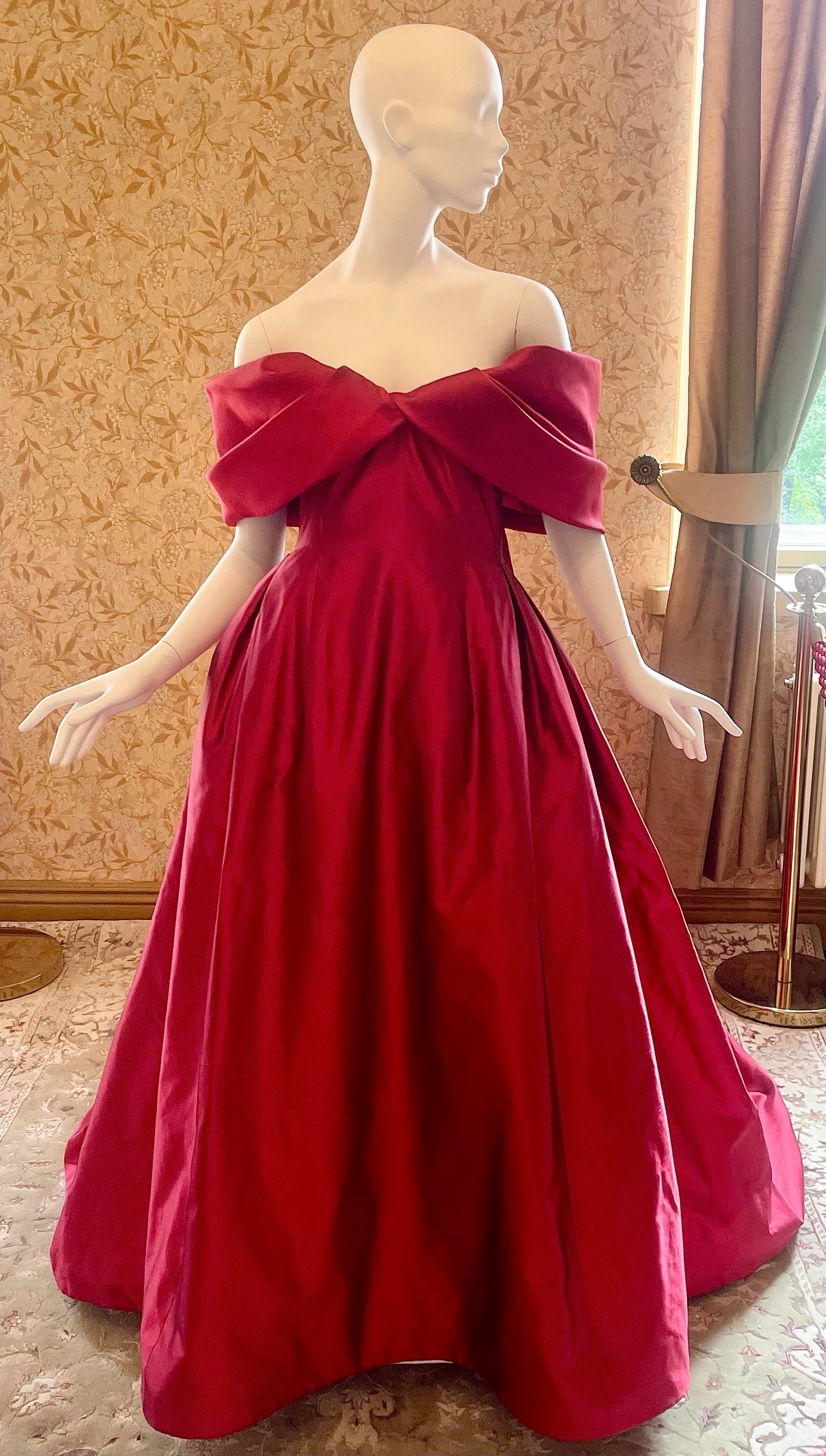 Alakerrassa voi jo haukkoa henkeä. Siellä on nimittäin nähtävänä suomalaisen muotisuunnittelija Anne-Mari Pahkalan suunnittelema häikäisevä uniikkipuku, joka nähtiin näyttelijä Alma Pöystin yllä Golden Globe -gaalassa tammikuussa 2024.
