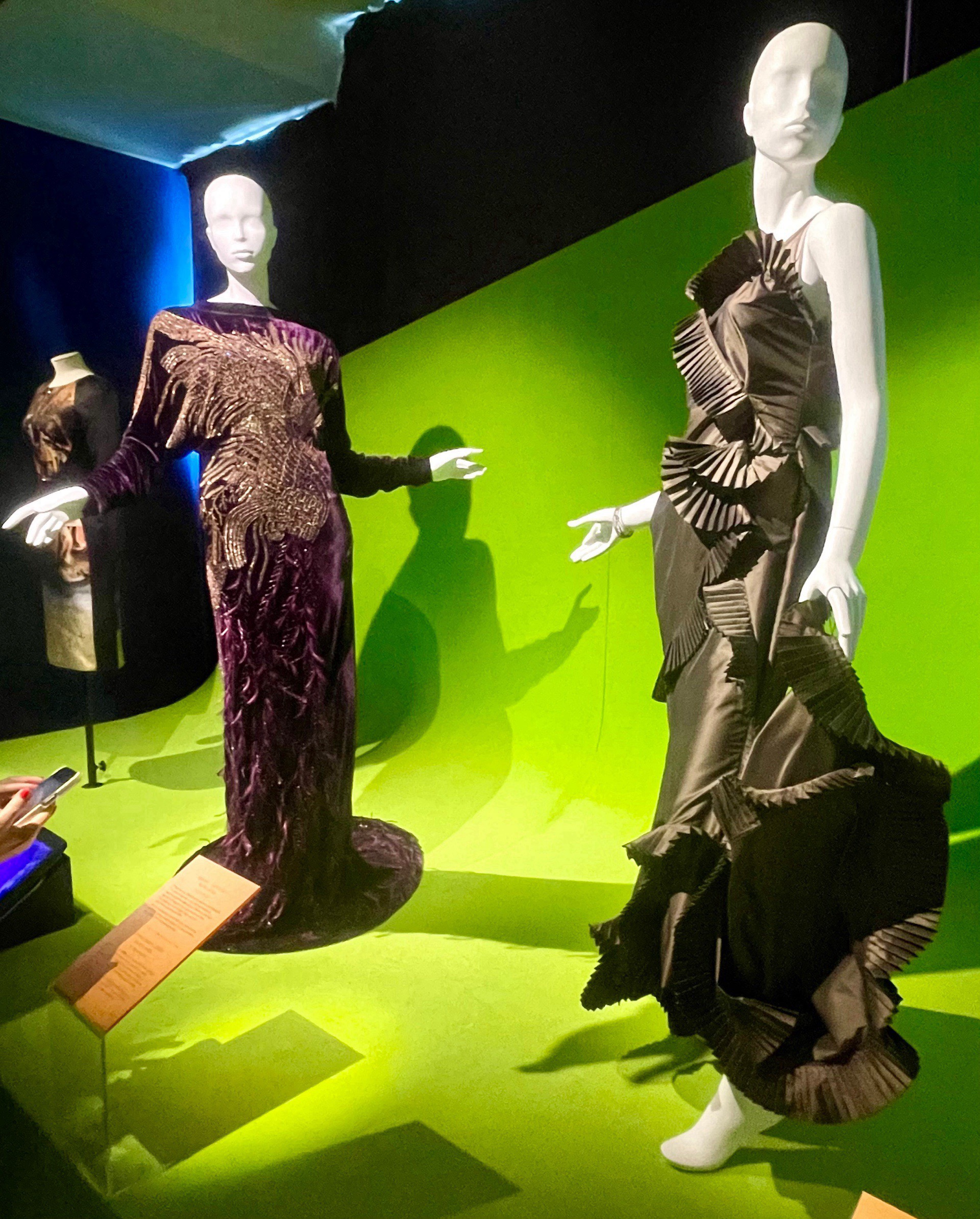 Muodin huipulla -näyttelyssä nähdään maineikkaiden suunnittelijoiden ja muotitalojen upeita luomuksia, jotka heijastavat muodin mailman muutoksia.”