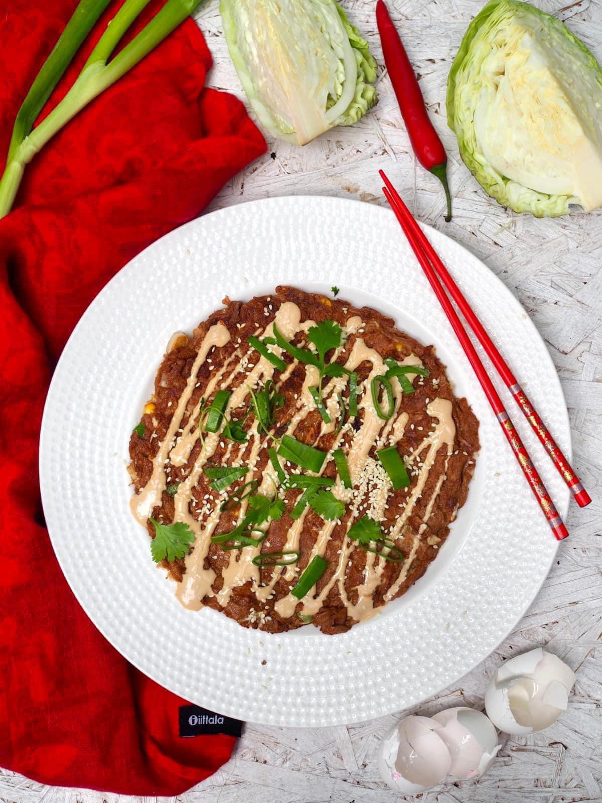 OKONOMIYAKI eli japanilainen kaalimunakas