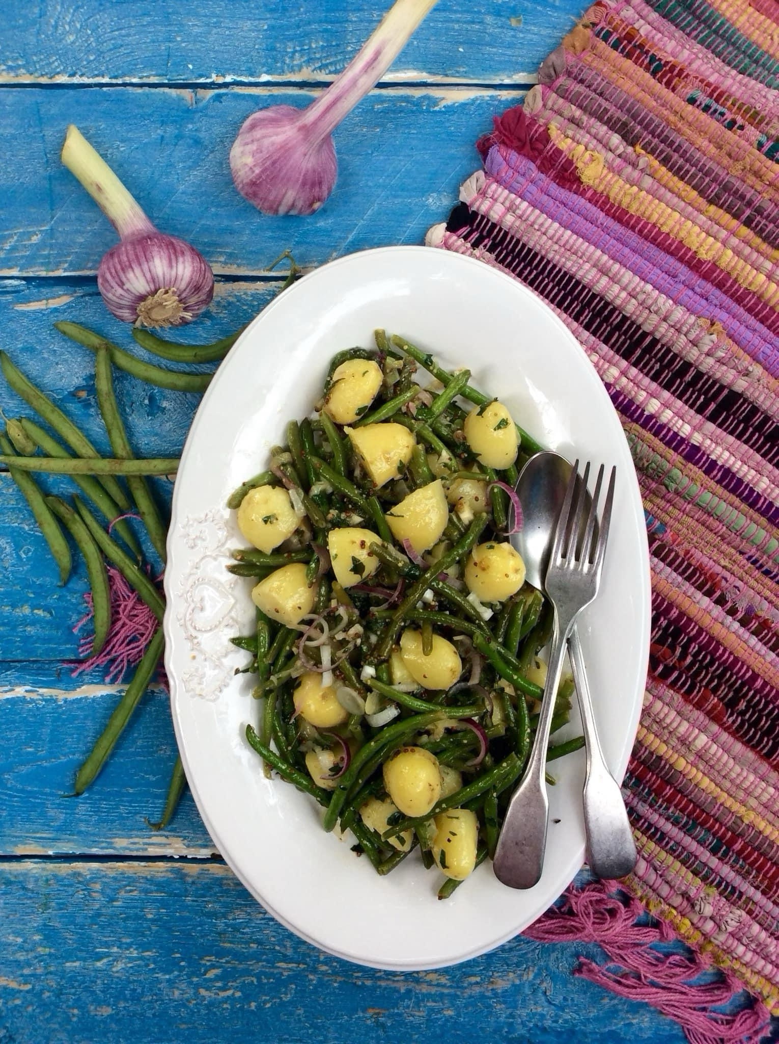 Kesällä ei välttämättä haluta seistä keittiössä, mutta hyvin syöminen kuuluu asiaan. Olen tarjonnut papu-perunasalaattia grilliruokien kaverina. Ohje syntyi vähön vahingossa, kun jääkaapista löytyi sekä marinoituja papuja että keitettyjä varhaisperunoita edelliseltä aterialta. Olen mieltynyt Lidlissä myytäviin pitkiin pakastepapuihin. Ja ne ovat vielä hyvin edullisia.