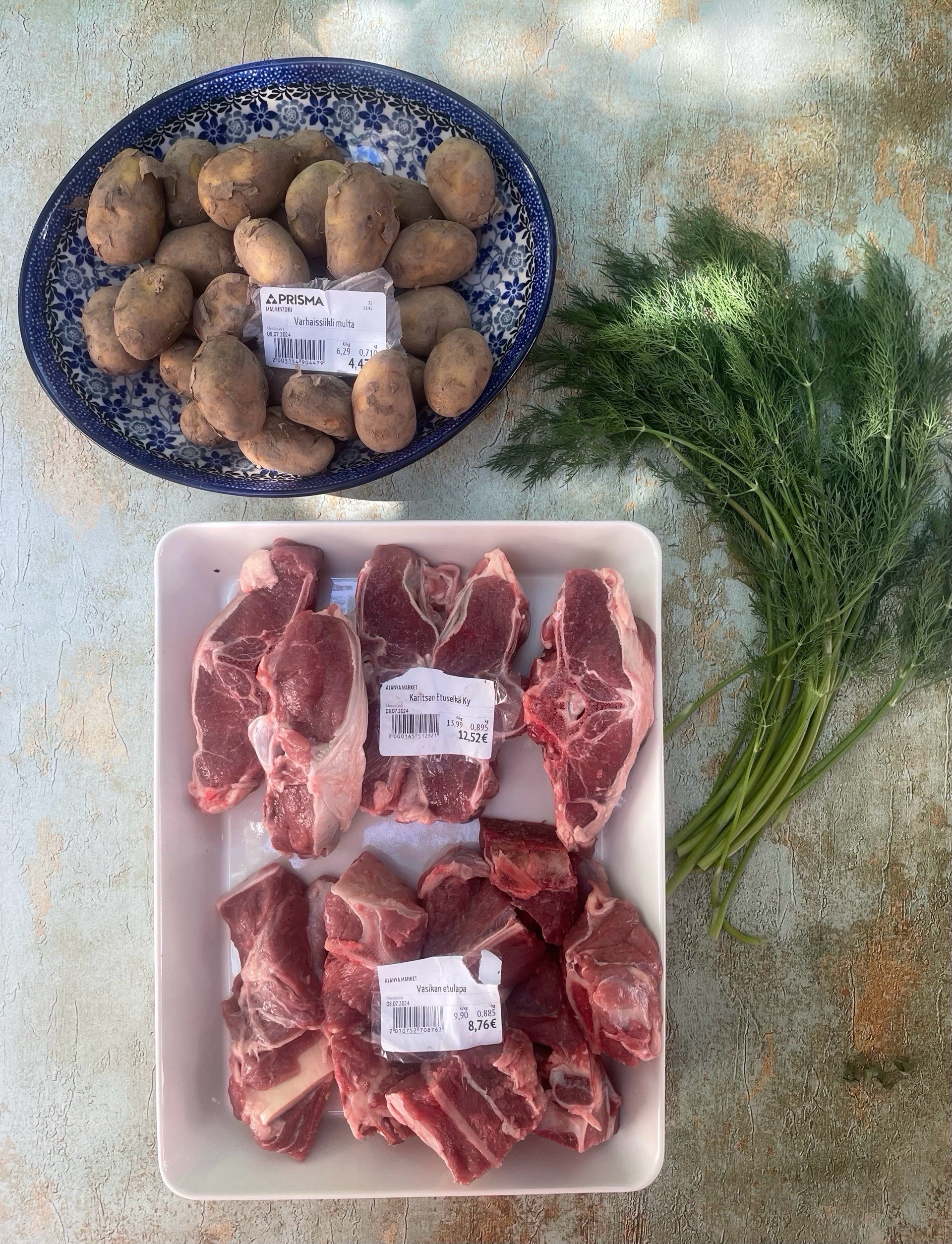 Minä löysin nyt Alanaya marketista sekä karitsan että vasikan etuselkää. Nyt pääsen vertailemaan kummasta lihasta tuli parempaa!