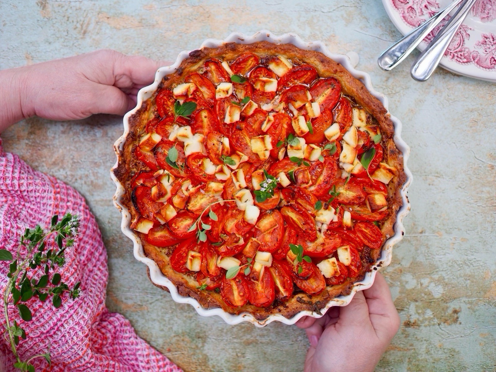 TOMAATTI-HALLOUMIPIIRAS YLLÄTYSVIERAILLE